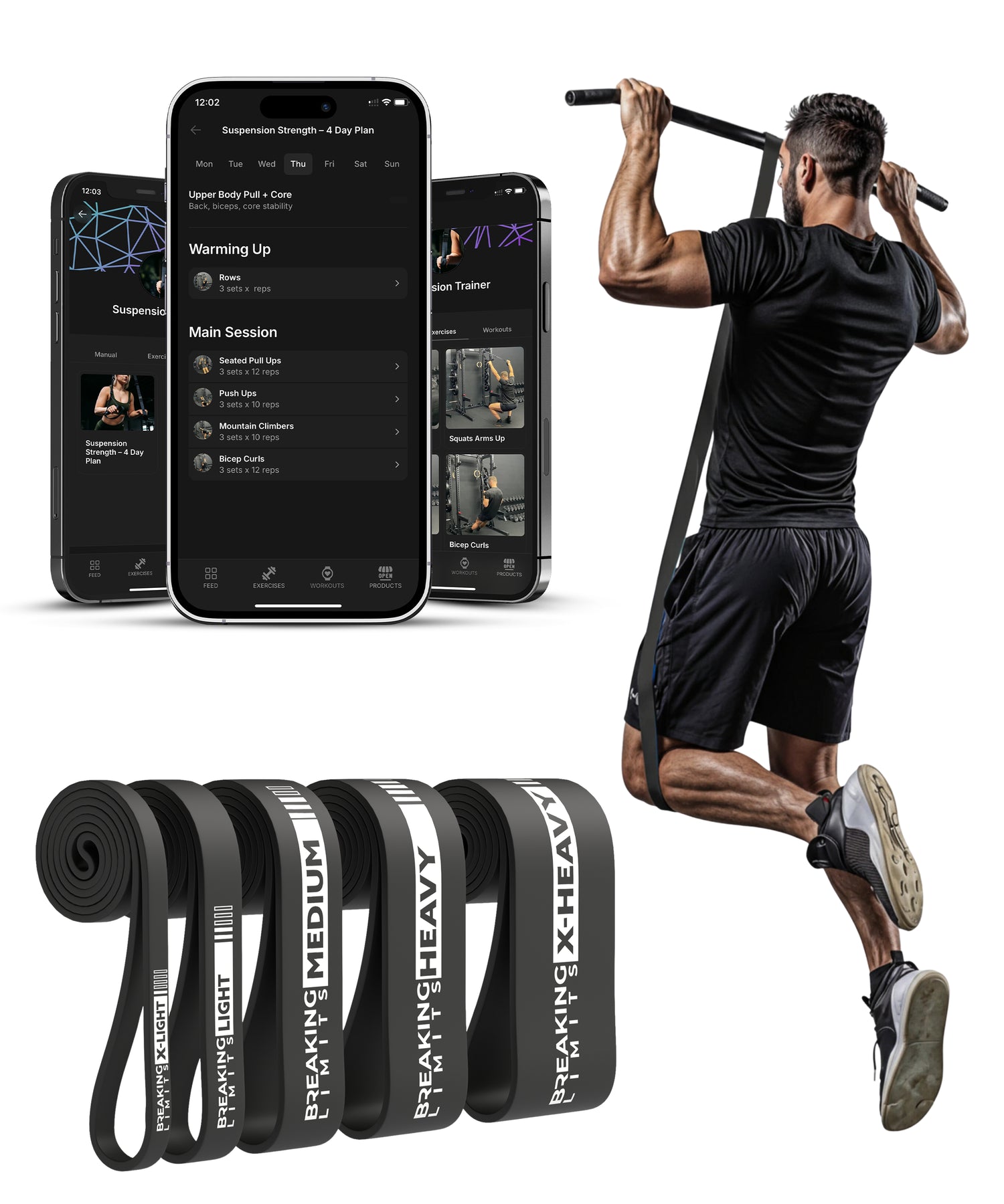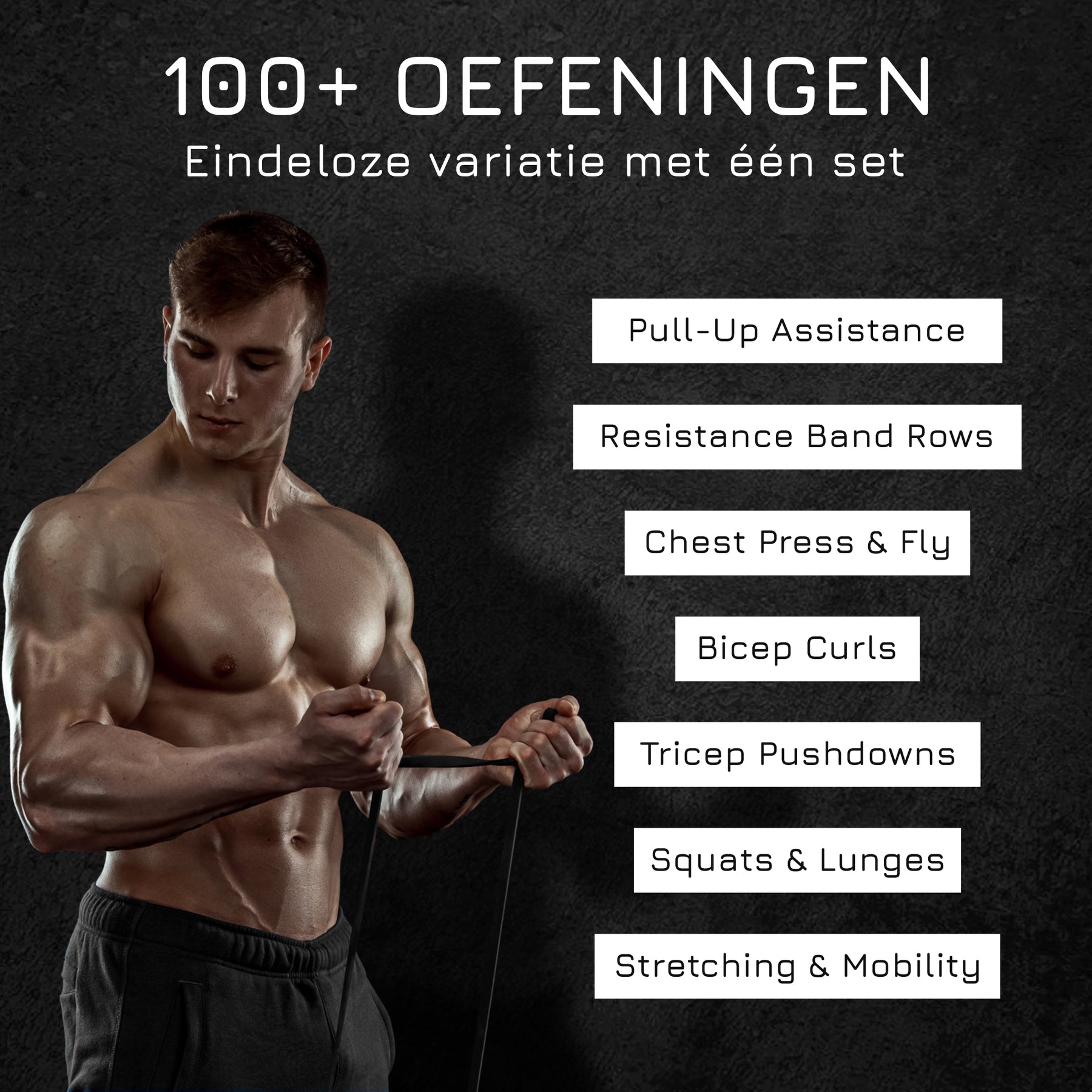 De banden zijn ontworpen om je stap voor stap sterker te maken. Start met meer ondersteuning bij pull-ups en bouw langzaam af tot je volledig zelfstandig optrekt. Ook bij krachttraining voeg je eenvoudig extra weerstand toe door meerdere banden te combineren.