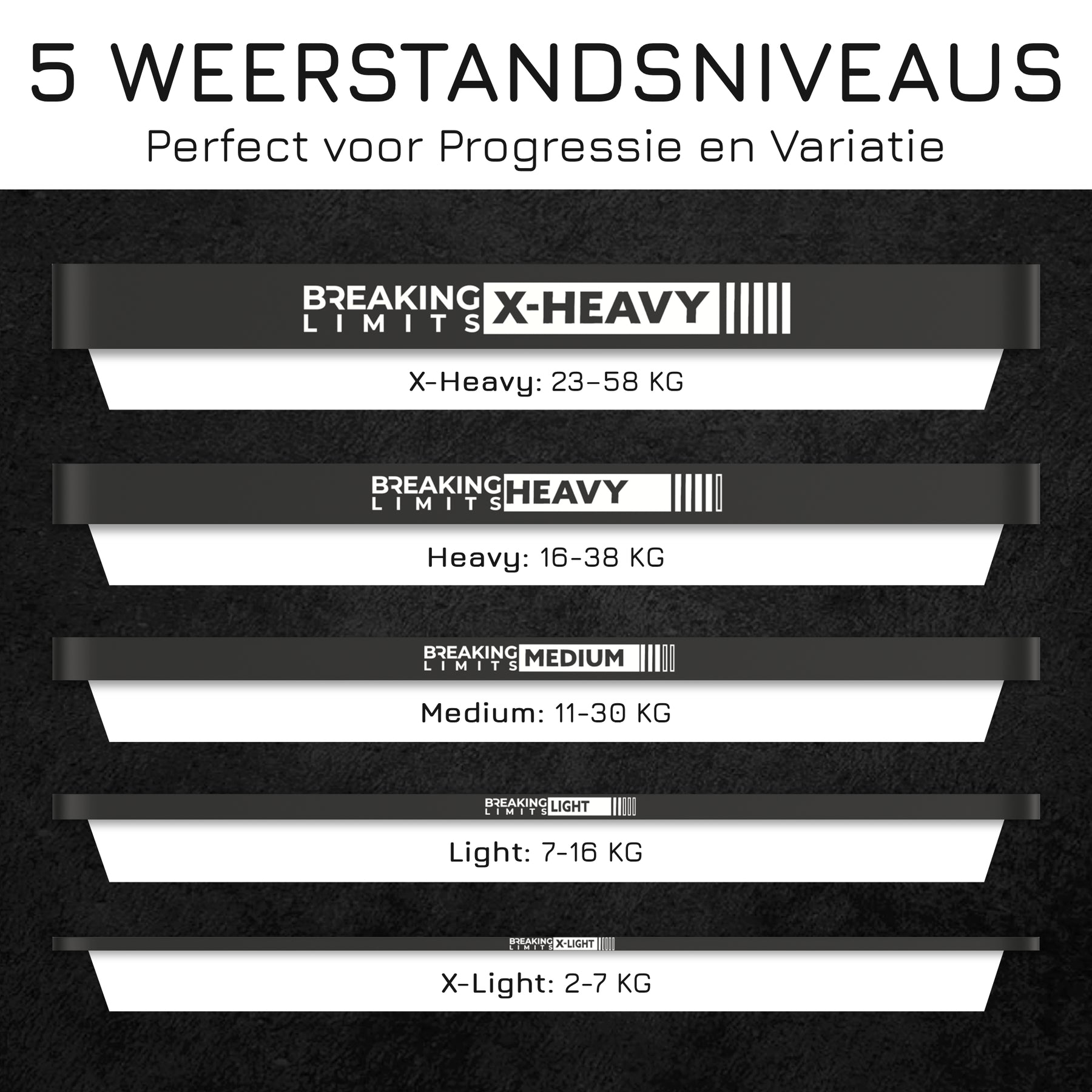 Ga voor meer kracht, progressie en variatie in je trainingen en bestel vandaag nog de Breaking Limits Resistance Bands!