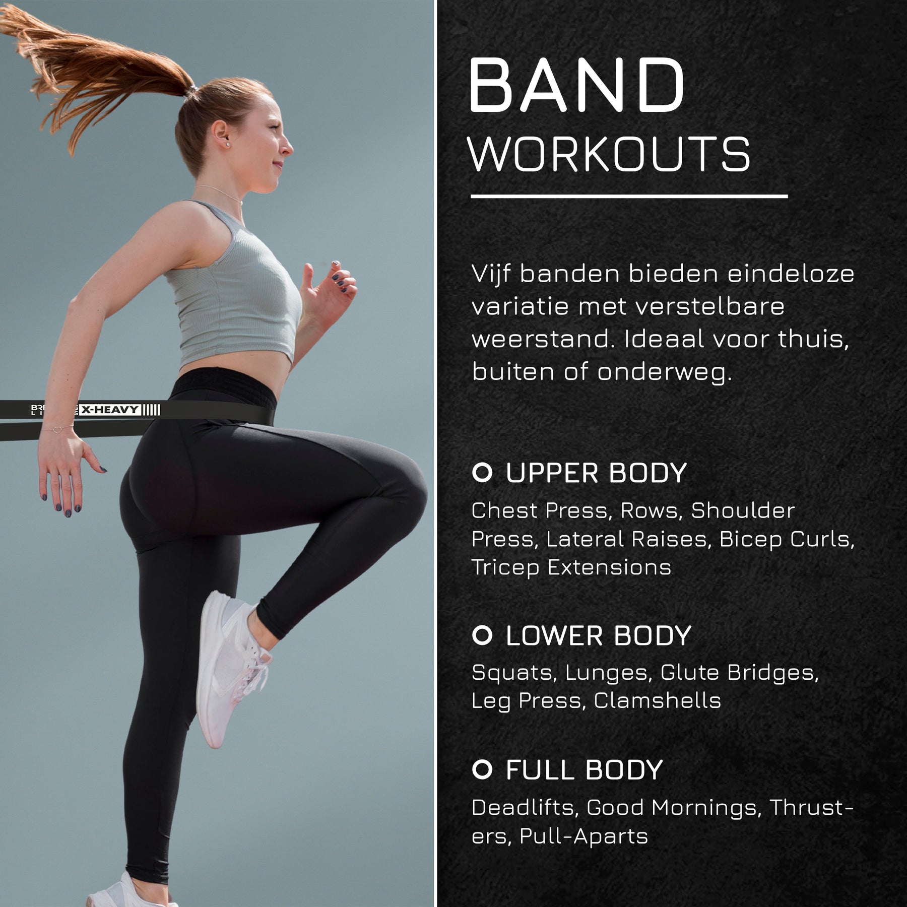 Resistance bands zijn dé tool om je kracht, mobiliteit en stabiliteit te verbeteren. Ze zijn onmisbaar voor pull-up progressie, maar ook perfect voor warming-ups, hersteltrainingen en spieropbouw. Een must-have voor iedere sporter die het maximale uit zijn of haar workouts wil halen.