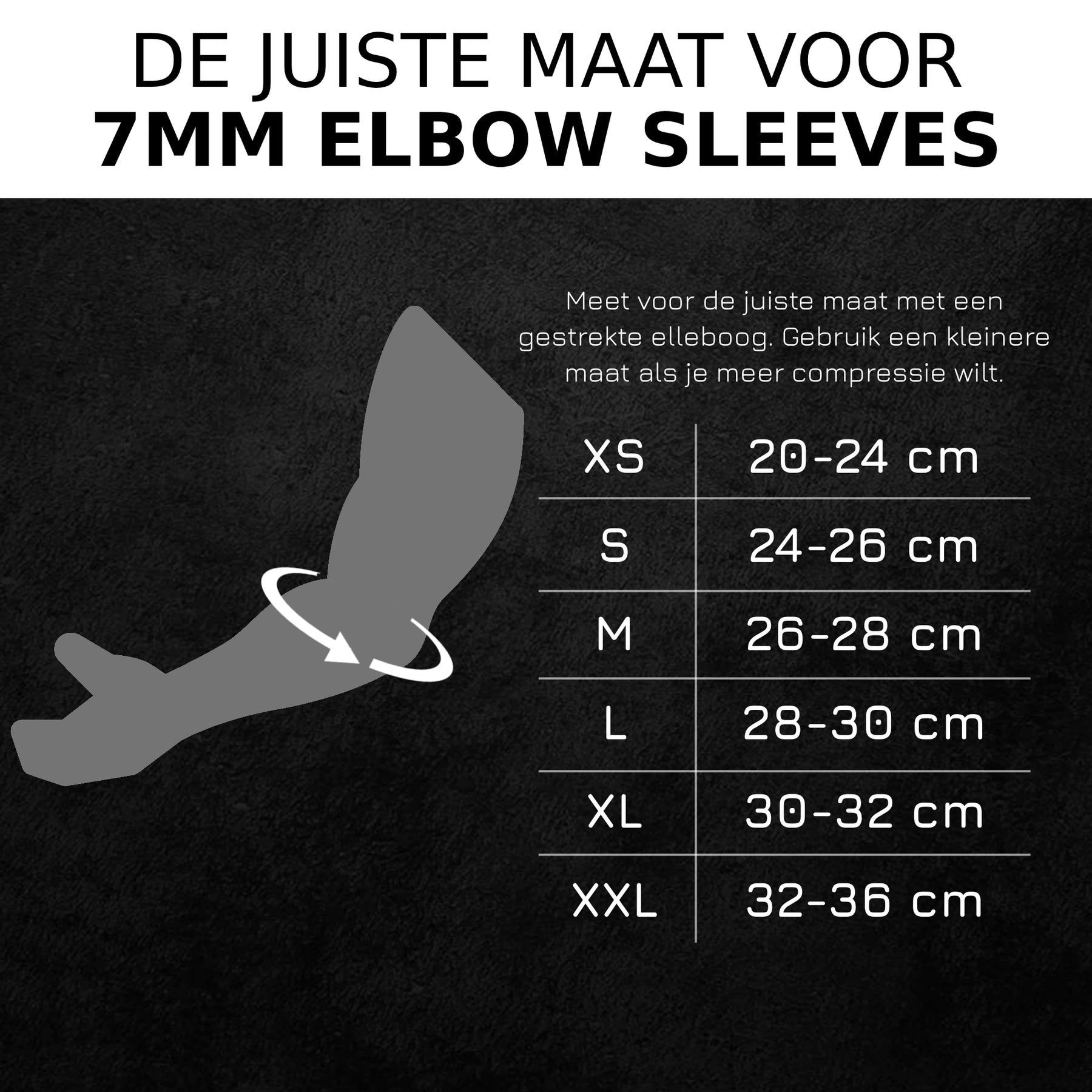 De Sleeves zijn geschikt voor zowel mannen als vrouwen. Meet de omtrek van je elleboog terwijl je arm gestrekt is. Voor een strakkere pasvorm adviseren wij een maat kleiner te nemen.