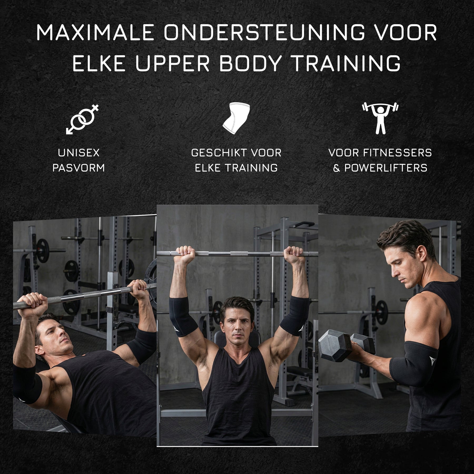 Onze Elbow Sleeves zijn ontworpen voor intensief gebruik en bieden een stevige, ergonomische pasvorm rondom je ellebogen. Dankzij de versterkte, dubbelgestikte naden zijn ze bestand tegen zware belasting en langdurig gebruik. Ideaal voor krachttraining, powerlifting, CrossFit en elke workout waarbij jij het maximale uit jezelf wilt halen.