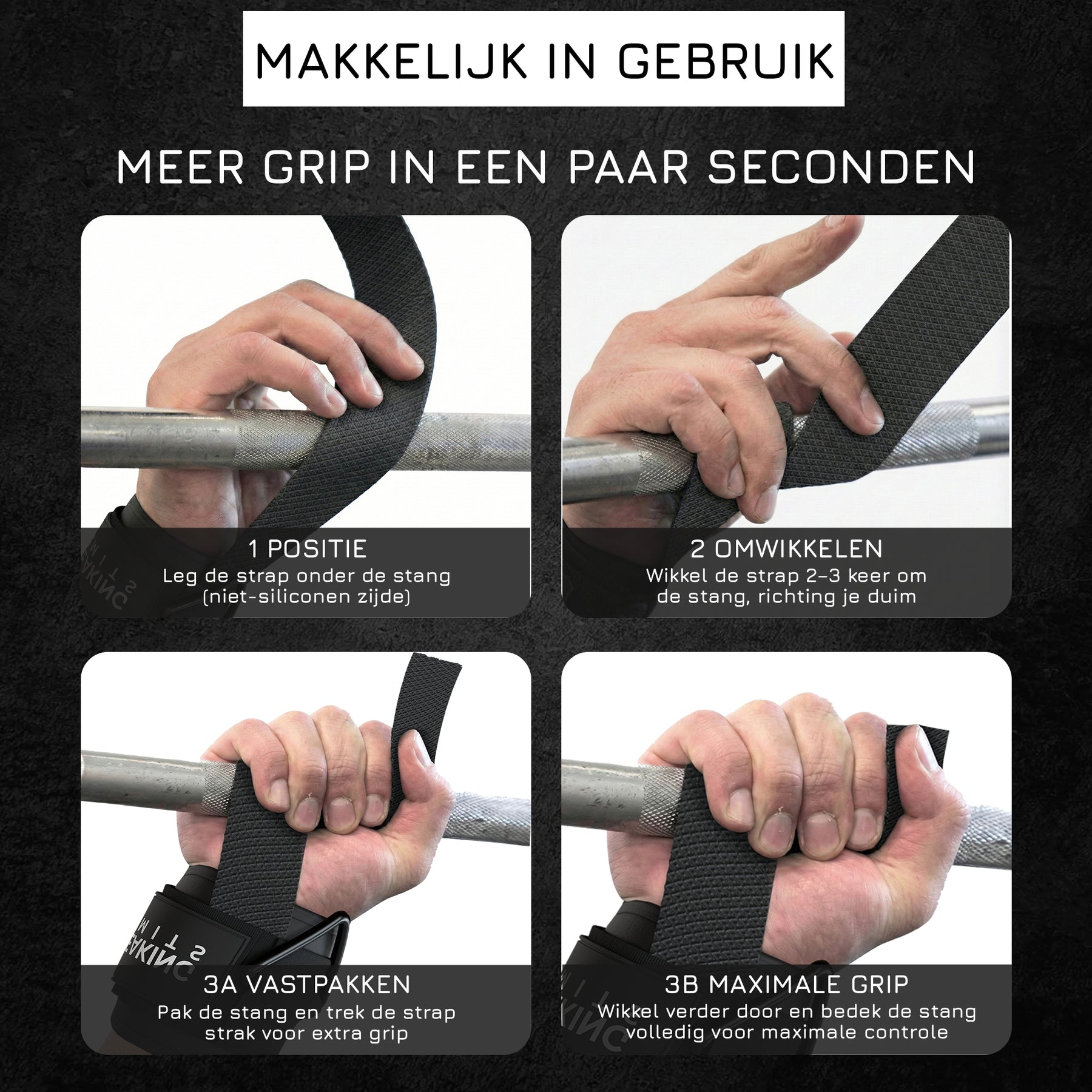 Deze unieke combinatie van lifting straps en cuffs zorgt ervoor dat je volledig kunt focussen op je spieren in plaats van je grip. De straps zijn gemaakt van 100% katoen met antislip siliconen grip, waardoor ze stevig om de bar blijven zitten, zelfs bij zware gewichten. Ideaal voor pull-oefeningen, cable machines en compound lifts.